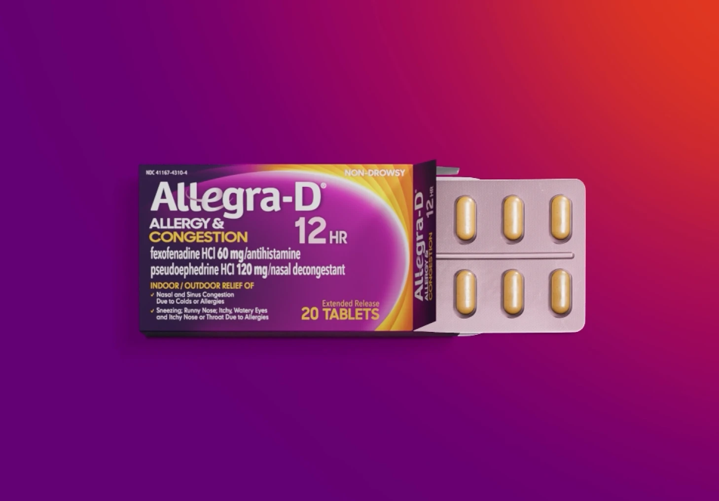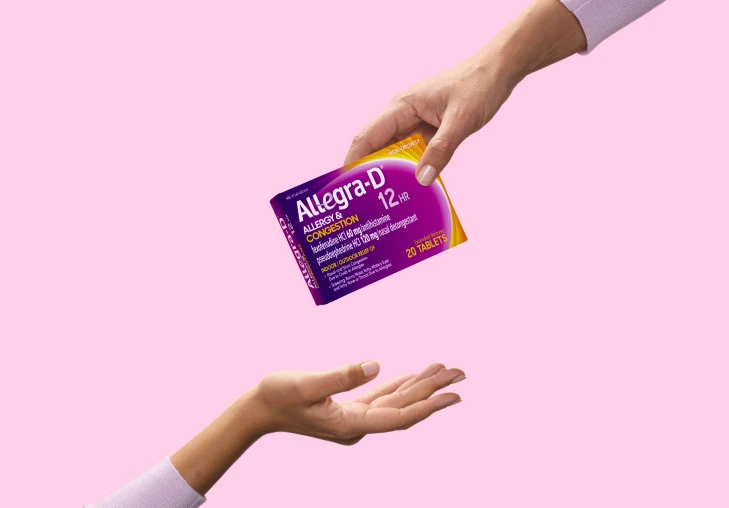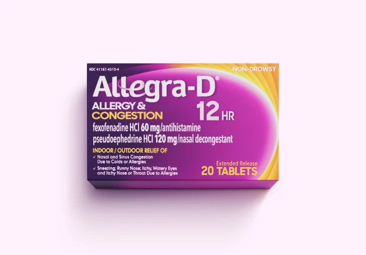 When nasal congestion and allergy symptoms hit, Allegra-D® is here to clear things up! Pseudoephedrine (PSE), a clinically proven decongestant, reduces swelling of the nasal passage, while Fexofenadine effectively relieves allergy symptoms. Allegra-D® tackles tough allergy symptoms and nasal congestion, so you can breathe easy and feel good all day.